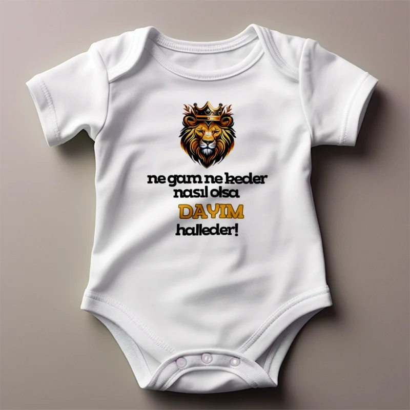 Ne Gam Ne Keder Nasıl Olsa Dayım Halleder Aslanlı Body Baskılı Zıbın