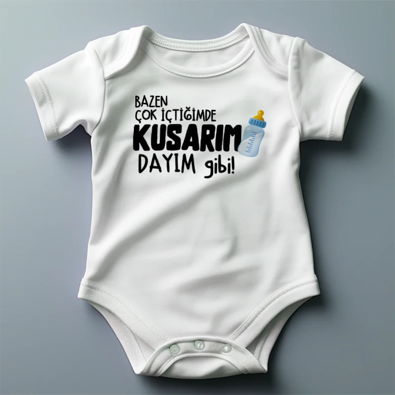 Bazen Çok İçtiğimde Kusarım Dayım Gibi Biberon Bebek Baskılı Zıbın