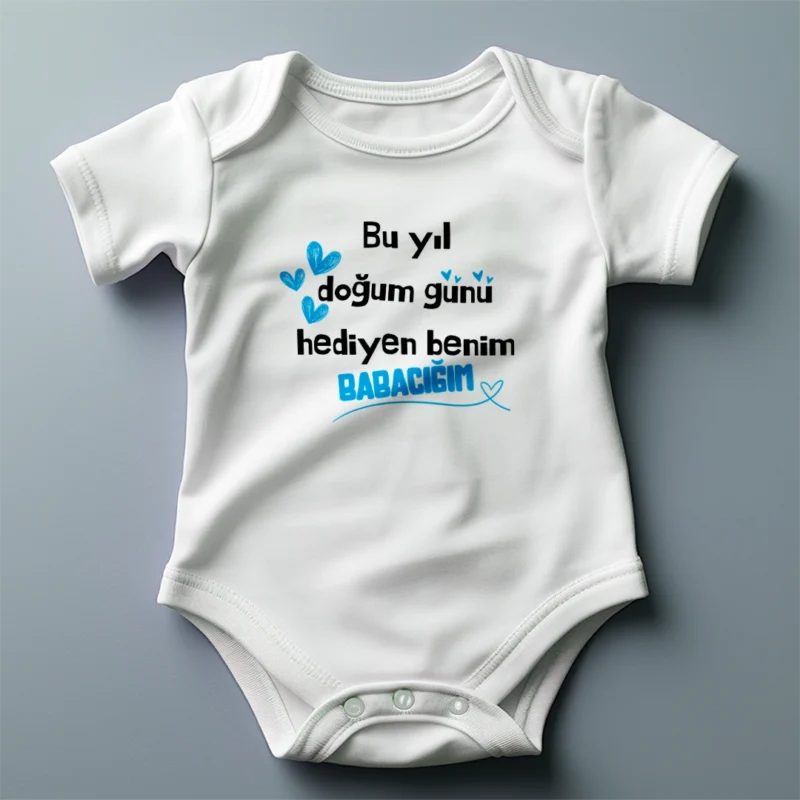 Bu Yıl Doğum Günü Hediyen Benim Babacığım Mavi Baskılı Zıbın