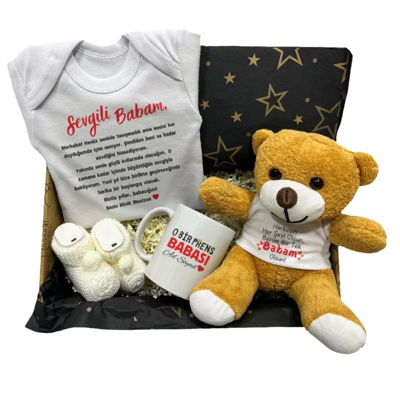 Prens Babası Baskılı Düz Kupa Zıbın Ve Ayıcık Yeni Yıl Hediye Seti